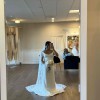 Unworn/unaltered satin wedding dress by Laudae (Amaro style). Boning in the bodice for structure with thick lining for a satin gown. Super comfortable! Went with a different dress for my wedding, but originally bought this one! AVAILABLE NOW. *lowered price to accommodate for shipping cost, or if local to San Diego, willing to meet up.