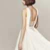 This stunning Jesus Peiro 2437 crepe soft aline gown is a dream come true for the modern bride. Its delicate lace detailing adds a touch of romance, while the low back and shoulder train exudes elegance and sophistication. The best part? The shoulder train can be placed down, allowing you to effortlessly transition from a grand entrance to a comfortable reception.