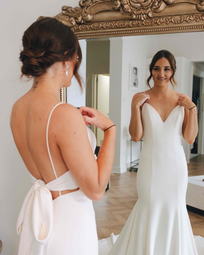 - The option to bustle the dress has been added