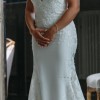 Material: Mix of lace and crepe with buttons all the way down the train. The lace is a glossy floral pattern.