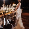Worn once, size 42 (6-8 US) alternations were made to fit my above measurements. I am a street size 4 and I am 5'5 and wore 3 inch heels. The dress was very long and covered my shoes. This is a stunning Berta Privee gown. The original cost of the dress was $8900.