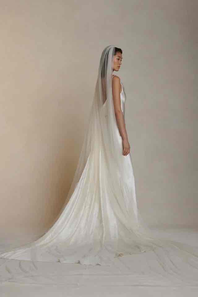 Soft tulle veil gathered into comb, length is 102" Color: Light Ivory | Pearl Size 104"