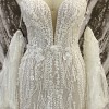 Fabulous, feminine and fashion-forward. Style 1421 from Martina Liana is for the bride who isn’t afraid of a little sparkle and shine. The off-the-shoulder, fit-and-flare silhouette features a plunging sweetheart neckline that adds a dose of high-fashion drama and a touch of bohemian glamour to the couture design. Exquisite 3D floral detailing, shimmering sequins and breathtaking beaded embroidery lead to a multilayered, trumpet-style skirt that is sure to turn heads with every step.