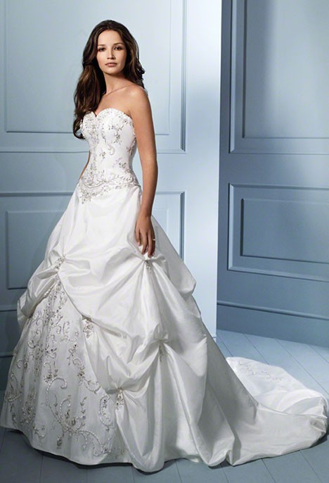 Alfred Angelo - Sapphire Collection, Style #758. This dress is ballgown style with sweetheart strapless neckline, semi-cathedral train, and zipper back. Dress was never worn and is unaltered. Purchased in 2012, kept in original Alfred Angelo garment bag since purchased and kept in a smoke-free and pet-free home. Willing to accept any offers.