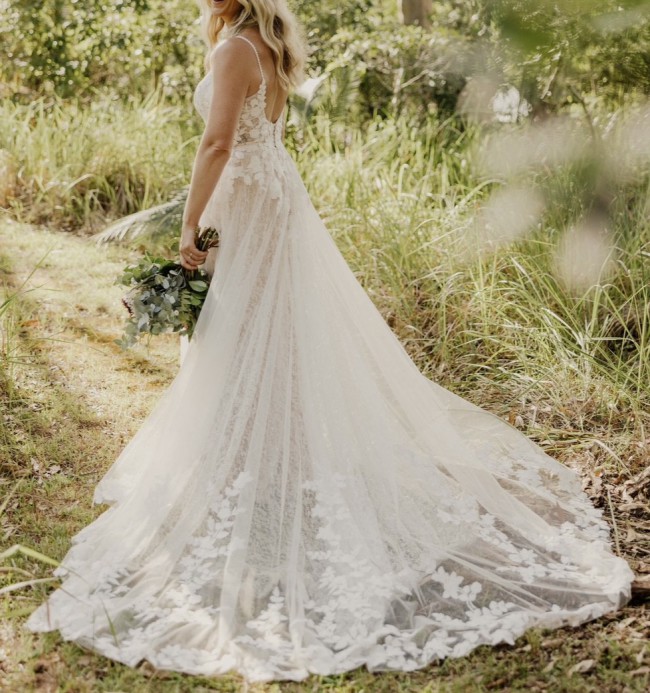 Madi Lane (Jenica). I feel like this dress was made for me, I absolutely loved wearing it on my wedding day and hope another bride can feel just as amazing in it as I did. Super comfortable, beautiful detail and minimal alterations (2cm off straps, bustle put on and hem taken up 2cm). I’m 173cm and wore 2inch heels so would suit a taller bride or could easily be taken up further).