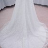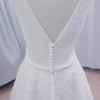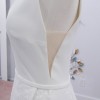 Info from the designer: Classic floral lace and crepe wedding gown with a deep V-back and thigh-high slit Classic floral lace and crepe wedding gown with a deep V-back and thigh-high slit