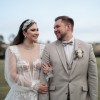 This Julie Vino dress was worn once for the reception of my wedding and it was a show stopper! I got so many compliments on this dress and was able to wear it in so many ways throughout the night. The dress is unique because it has sleeves that can be worn off the shoulder, on the shoulder to create more of a square neck look or detached sleeves to create a strapless look, perfect for dancing! I also added the ability to bustle the dress so the train isn't in the way when getting low. The dress is the perfect amount of sheer without being see through, fun, and flirty! I truly could see this being worn in many different styles of weddings.