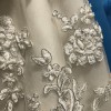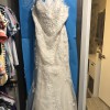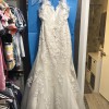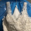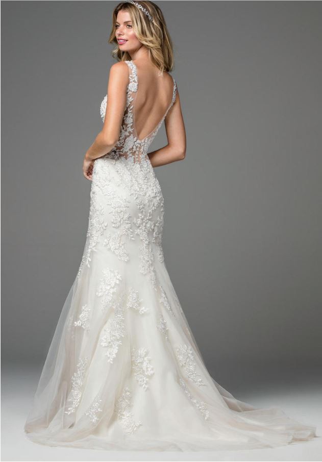 Romantic and modern! Featuring a Toscana Motif, this gown's intricately crafted details and thoughtfully placed beading highlight the open, illusion back. Pearl buttons along the back add the final details that pull this exquisite gown together. Chapel train.