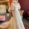 Lace, A-line silhouette.Detachable sleeves were made by the designer to reach elbows only