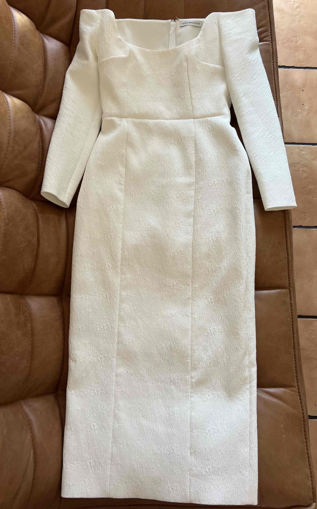 This would be an incredible dress for a bridal shower, rehearsal dinner, micro wedding, second look, mother of the bride, garden party, or a baby christening.