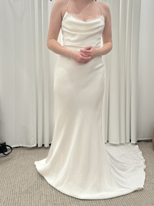 Purchased secondhand but the dress was too short for me. I’m 5’6 without shoes and it is at my ankles. Only worn once! Try-on photos are from my appointment at GLL