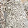 "This stunning wedding dress is the perfect choice for boho brides or beach brides looking for a premium dress. Made from delicate sheer fabric, this maxi dress features a flattering v-neckline, long sleeves, and a beautiful hand-embroidered design. With its puddle hem and elegant silhouette, this dress is sure to make any bride feel like a princess on her special day."