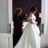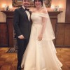 This dress is gorgeous and comfortable with the most beautiful design. It is a dream of a ballgown with off-the-shoulder straps, as well as a zipper with fabric-covered buttons in back. The pockets are wonderful as well.