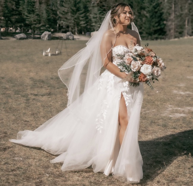 Can meet up to try on before purchase. We can also meet halfway if it is more convenient. Will include the veil which is a $250 value.