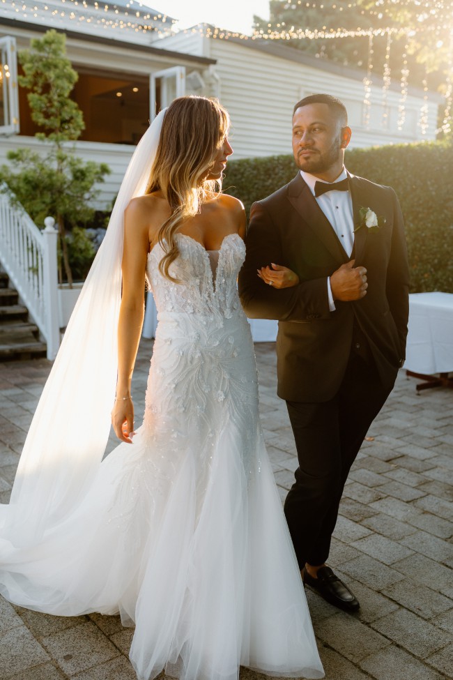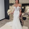 This beautiful dress was named after me the 'Louise' it has clean lines and unique beaded lace. Sultry mermaid silhouette, plunging sweetheart bodice and 3D floral detachable lace straps. Classic chapel train and tulle skirt.