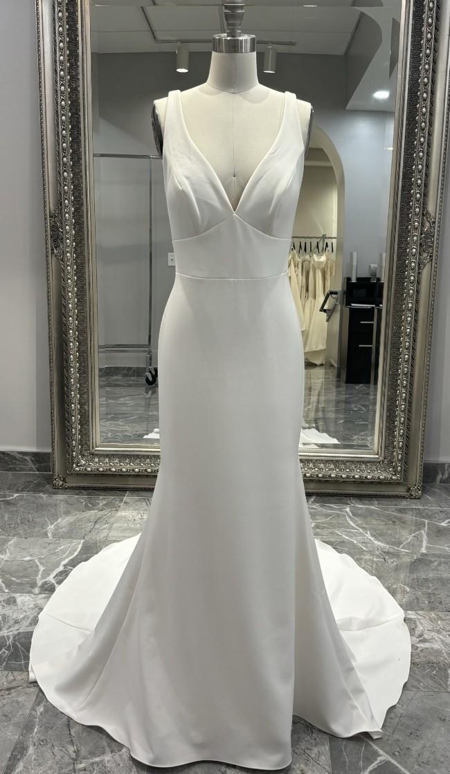 Bring your vision of bohemian bridal bliss to life with the Iona gown by All Who Wander. The sleek, ultra-chic wedding dress features a gorgeous deep V-neckline, incredible seaming and a feminine, curve-hugging silhouette.