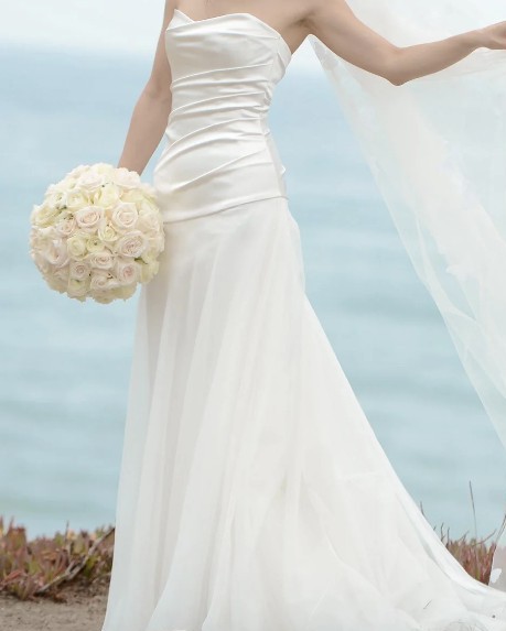 This is a timeless, elegant dress made with the best silk fabric (Satin and Organza silk). The colour has a very pale pink to it, it might be best described as oyster, I have taken a close up of the back so you can see the colour and uploaded some close ups of the dress. Some of the photos are of the dress I found online and are white but my dress is the close up of the back. It was made in Italy and never worn by anyone else except by me for the big day , it has been cleaned and is in perfect condition. I bought it direct from the deisgner in their London boutique. The dress comes with an attachable neckline wrap. The dress has a built-in corset to shape your body so it makes you have the perfect waistline. There is also a built-in bustle for an evening of dancing if you wish to use it. Just to give you an idea of my height and weight, I am size 12 and 5ft 3.5 without shoes and I wore 3 inch heels on the day.