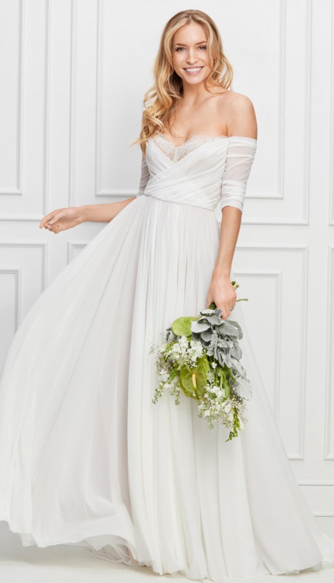 Very romantic ethereal dress. Off the shoulder 3/4 length sleeves.