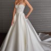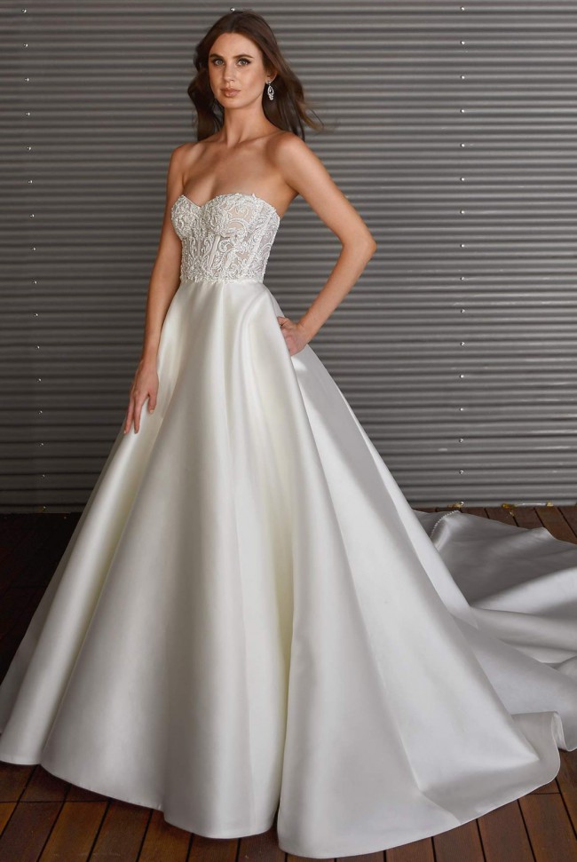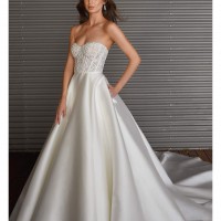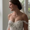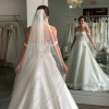 This dress has not been worn in a wedding. It was tried on at the bridal store and then again at the alteration place. No alterations were made except to remove some of the tulle from under the skirt to make it more A line and less poofy, but no alterations in length or body were made. It is still the Bridal size 6 which is a size 2. The wedding dress is still in the original bag and in excellent condition. Arm drapes are included. The dress is comfortable and would be easy to dance in.