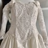 -Off-shoulder design with sheer lace sleeves embellished with pearls.