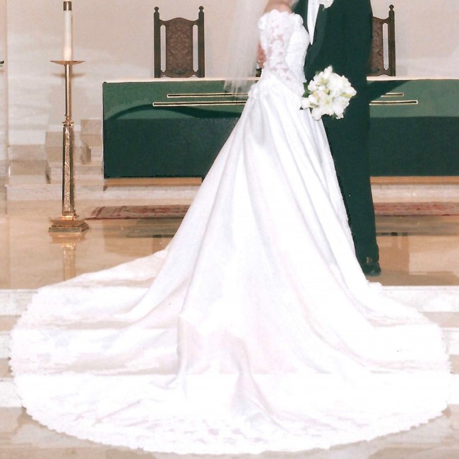 Dress was drycleaned and placed in a preserved box and sealed for storage.