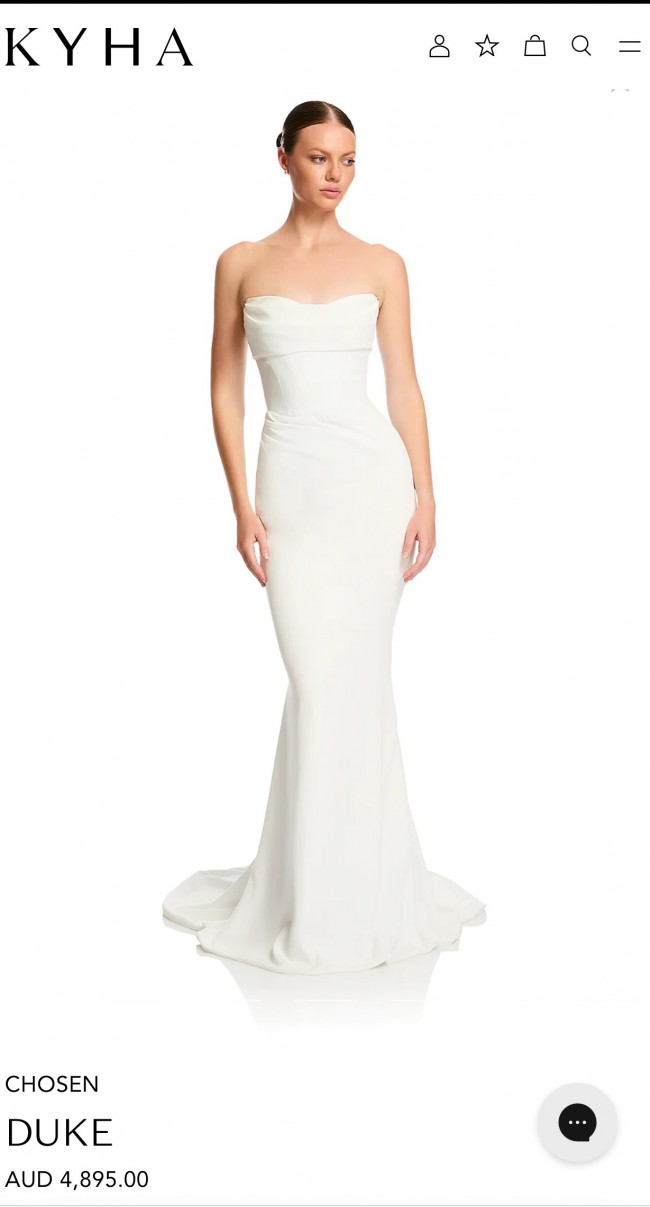 DRESS: Fit for royalty, Duke sees contemporary couture meet sumptuous minimalism. Its structured, corseted bodice and fit and flare skirt cuts a statuesque figure. Cut from luxe triacetate and draped artfully across its scooped neckline and waistline, Duke masters the sartorial craft of elevated drama.