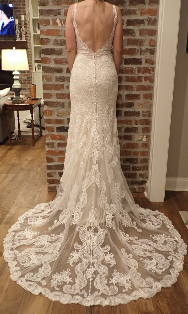 Exquisite designer gown by Madison James, BRAND NEW with tags, CLEAN AND UNWORN, Elegant and lovely, the bride decided to wear her Grandmother's gown instead so we are selling it. It has been stored in the protective bag in an air conditioned closet.