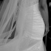 Full lower skirt with tulle side godets and back train overlay for added drama