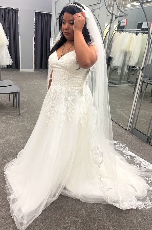 I bought the dress of this year, sadly I'm not going to used it. I quite beautiful, my mother, my sister and I was looking for a simple dress but I did fell in love with it. I does have pockets ( women will need it for your wedding day) It's just sitting on my closet and I do have the long veil and some accessories.