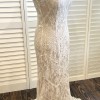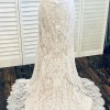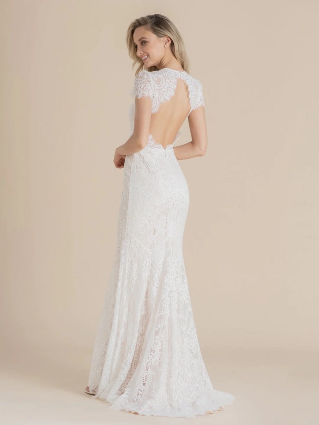 Delicate and fluid graphic floral lace covers the body of the Lavi Gown for a pretty but alluring style. Layers emphasise and mimic the graceful movement of blossoms falling to the ground. The open-back is defined by scalloped lace that evokes a vision of a growing secret garden.