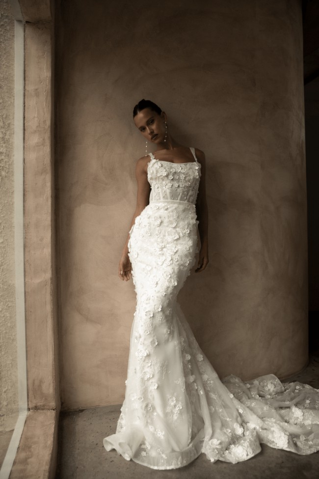 We are selling the beautiful Hartford by Jane Hill. This is a sample from a bridal boutique, so it hasn't been worn on a wedding day or altered in any way.