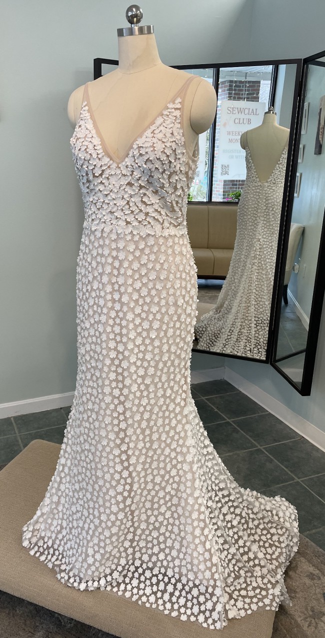 This is an unaltered sample dress in pristine condition. I ended up going with another dress so would love for it to go to someone who loves it!