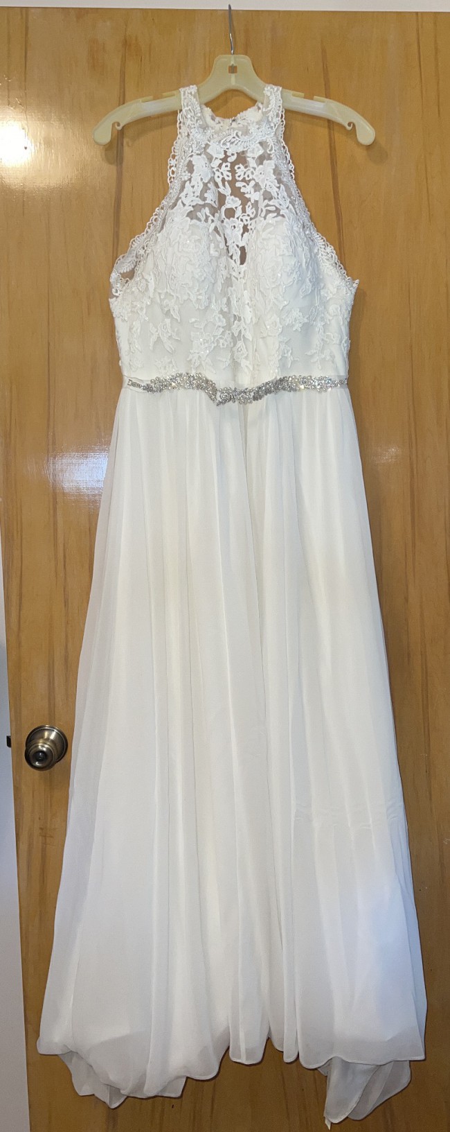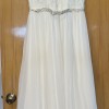 - The dress has a train and there are pieces of ribbon attached underneath to tie up the train underneath and make the dress shorter