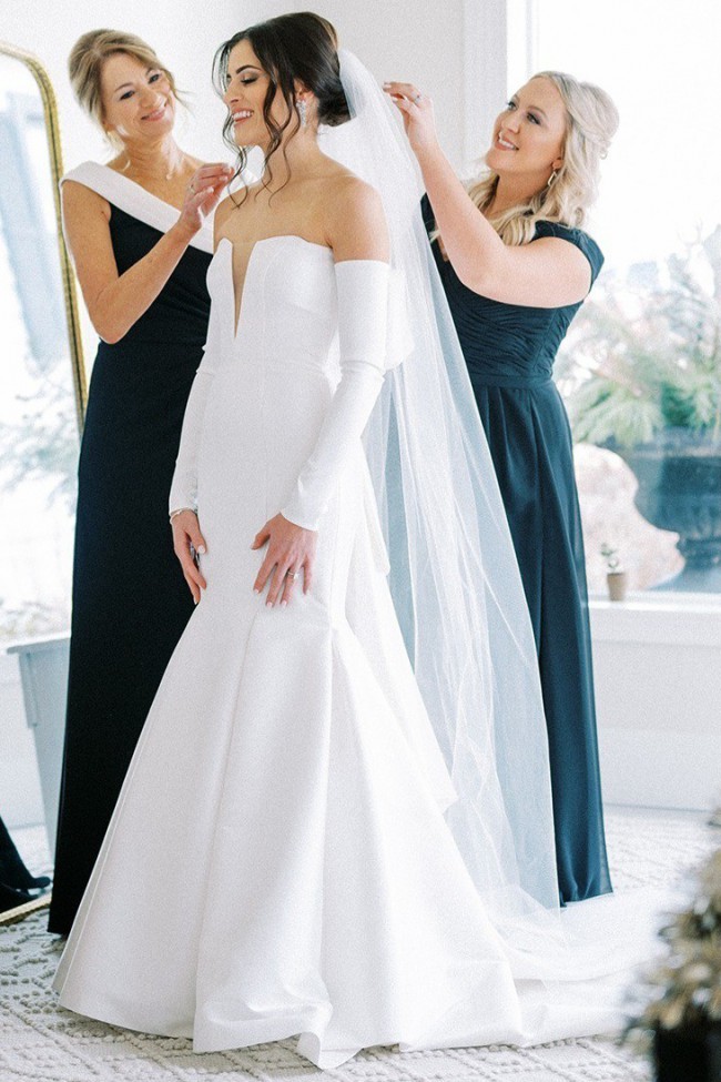 Purchased off the rack at dion for brides last one available and was never worn, dry cleaned by bridal store on pickup