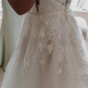 Dress is in perfect condition- dry cleaned. Just the ends of the dress that touches the floor is worn and couldn’t be cleaned. Would suit someone a small but shorter who would have it taken up.