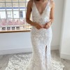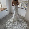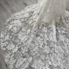 Crafted with beautiful lace from top to bottom that fans all around the bottom of the train.