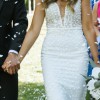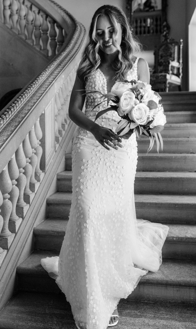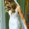 Worn for my wedding however has been professionally dry cleaned and minimal signs of wear, the underside of the train has very faint marks but this can’t be seen.