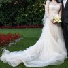 Dress comes with removable long sleeve bolero and veil.