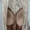 āEast is cut into a halter silhouette, which frames and flatters your shoulders beautifully. The bold detailed twist lace has sinuous curves which envelop the body at flattering angles and hug the figure beautifully. Drama is emphasised with a sienna lining, and directional change of the lace.ā