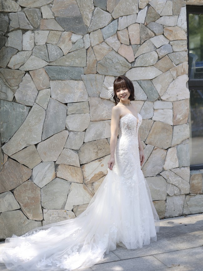 The cover photo captures the dress in natural sunlight, allowing you to see its full beauty and intricate details. The sunlight enhances the gown's fabric, highlighting its delicate features and luxurious design.