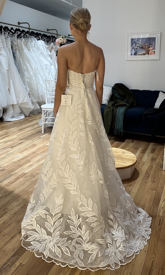 Boasting custom embroidery from head to toe, the Watters Soraya gown is not short on dimension. Coreseted for the perfect amount of structure, and balanced with luxe layers - making this gown an ethereal dream.