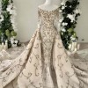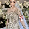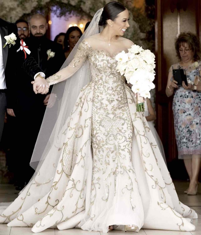 One of a kind, custom made Steven Khalil dress with detachable overskirt. Heavy detailing and beading work throughout. Long sheer beaded sleeves. Dress is in excellent condition. Made in July 2023. I paid $27,000 for this dress.