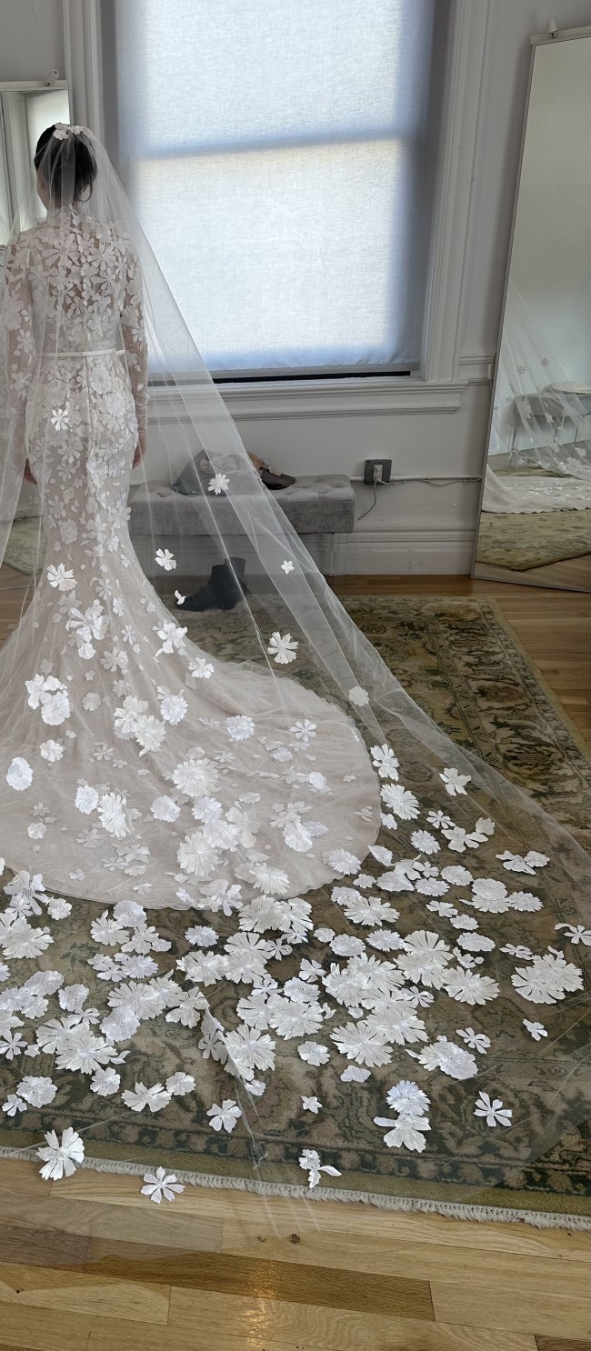 Also, have the Mira Zwillinger Ness veil and topper and open to selling them together or separately. The veil would be an additional $2k (originally $3.6k) and the topper would be $2.4k (originally $4.9k). Please feel free to message me if you have any questions at all. Happy to share more photos or videos :)