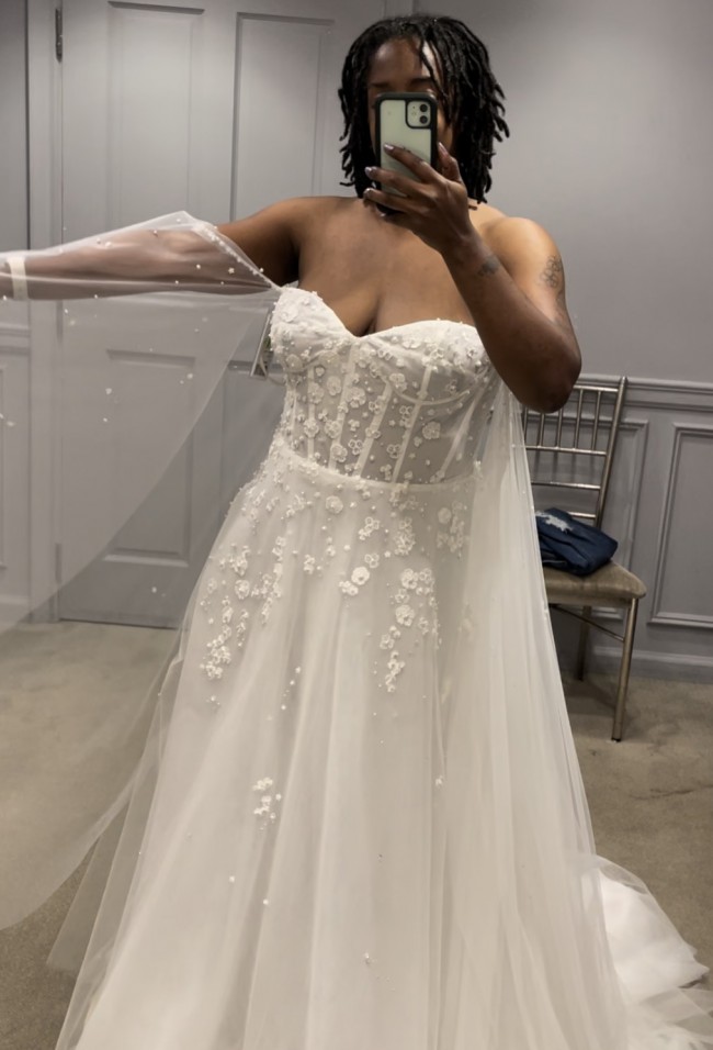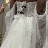 Never worn, Beautiful, light weight gown. Great for summer wedding or a princess feel. Sleeves are detachable. Corset top. Willing to negotiate.