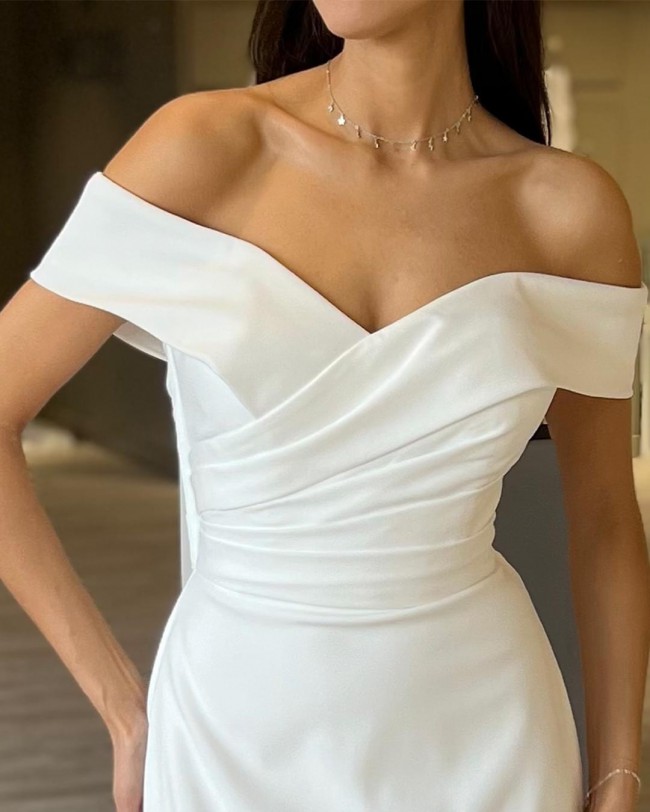 Brand new with tags beautiful, unaltered, size 12, extremely popular “Rio” off the shoulder crepe dress for sale. (Think it’s sold out in most Wed2b shops) still linked on website here https://www.wed2b.com/rio