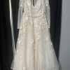 Crafted with meticulous attention to detail, this gown features delicate illusion sleeves that gracefully frame the shoulders, adding a touch of romance to the overall look. The plunging neckline accentuates the bride's natural beauty, while the ball gown silhouette creates a stunning hourglass figure.