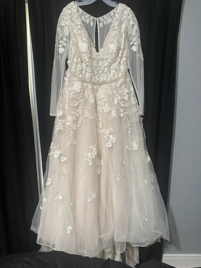Introducing the Illusion Sleeve Plunging Ball Gown Wedding Dress, a breathtaking masterpiece exclusively designed by David's Bridal. This enchanting gown is the epitome of elegance and sophistication, perfect for the modern bride who dreams of a fairytale wedding.