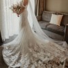 Beautiful cashmere and ivory wedding dress RRP £2,300. A figure flaunting drop waist mermaid sillouette. Romantic lace detailing. Worn once, it has been dry cleaned. Size 10-12.