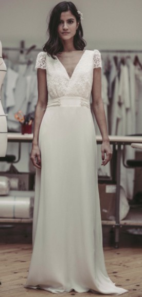 ‘B U K O W S K I‘ / With its easy to adjust front criss cross neckline and stunning Swiss lace, the Bukowski has both modernity and elegance, a perfect timeless look. Sheer lace open back and fitted skirt, with draping detail and pearl buttons at the waist.