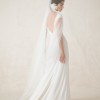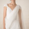 Fit & Styling: Gown is made of two soft layers of silk georgette with a hint of silver speckled detailing. It is cut on a bias with unique asymmetrical cuts, v-neckline, and a deep open back. Twisted shoulders create an off-the shoulder cap sleeve look. Gown is brand new with a few threads loose at neckline.